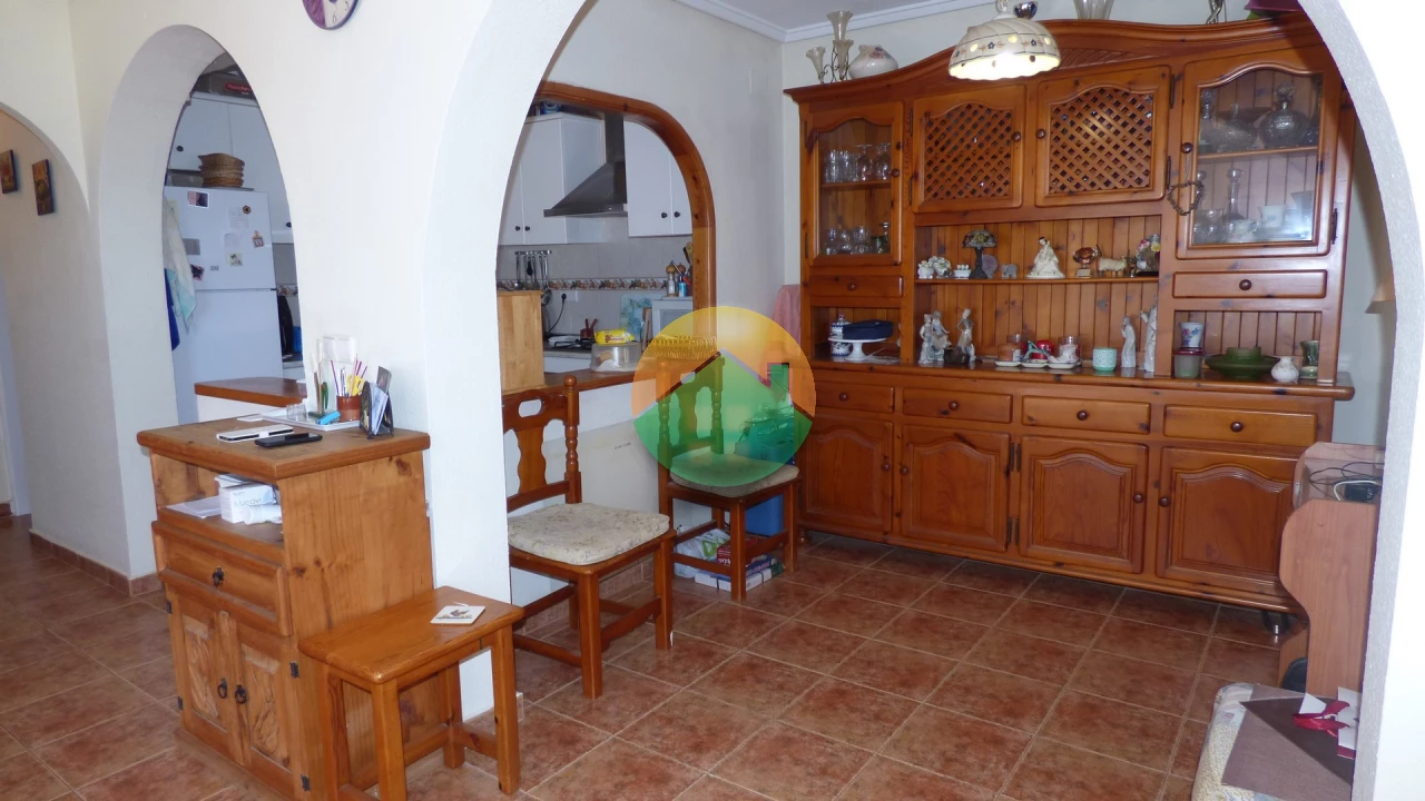 The property sits on a low maintenance landscaped plot. To the front, there is a part shingle /part paved area with a variety of fruit trees, shrubs and a gazebo by the pool area. The 8x4m2 swimming pool is south facing with space around the pool area, ideal for taking in the Spanish sunshine and al-fresco dining. There is a gravelled driveway to the side of the property for off road parking with a sliding gate and the property also has a small underbuild which is currently used for storage. There is also a very large brick built storage room at the back and more storage underneath the stairs to the roof terrace.